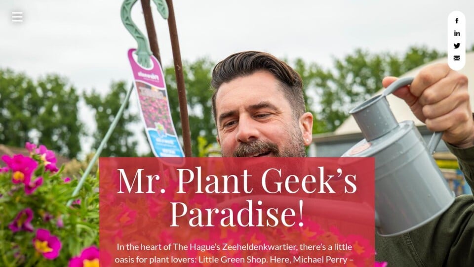 In the heart of The Hague’s Zeeheldenkwartier, there’s a little oasis for plant lovers: Little Green Shop. Here, Michael Perry – aka Mr. Plant Geek – meets founder Barro to explore a world of sustainable plants, handcrafted Kokedamas, and vintage treasures. Together they talk trends, plant care, and why greenery is more than decoration: it’s living art.