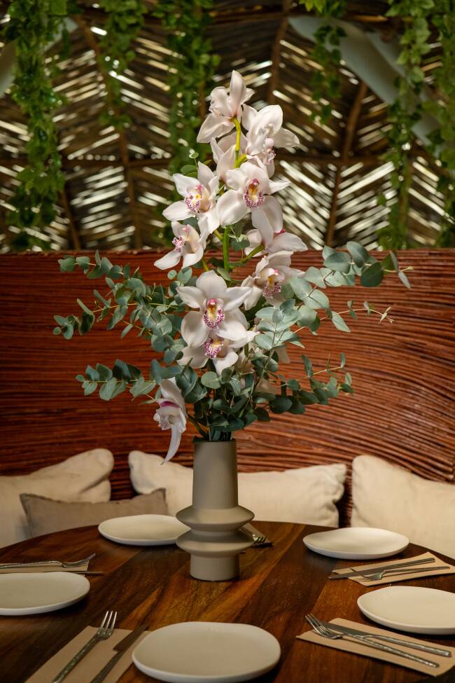 Luxury doesn’t rely on abundance. Sometimes, one deliberate choice is enough. The Cymbidium embodies elegance, strength, and refinement in its purest form. With its sculptural shape and vibrant presence, a single stem already creates impact. In Valencia, the Cymbidium moves effortlessly through different worlds. It elevates refined restaurant interiors and takes centre stage in the hands of a passionate florist. Whether placed alone or in a subtle composition, it brings calm, confidence, and character to any setting.