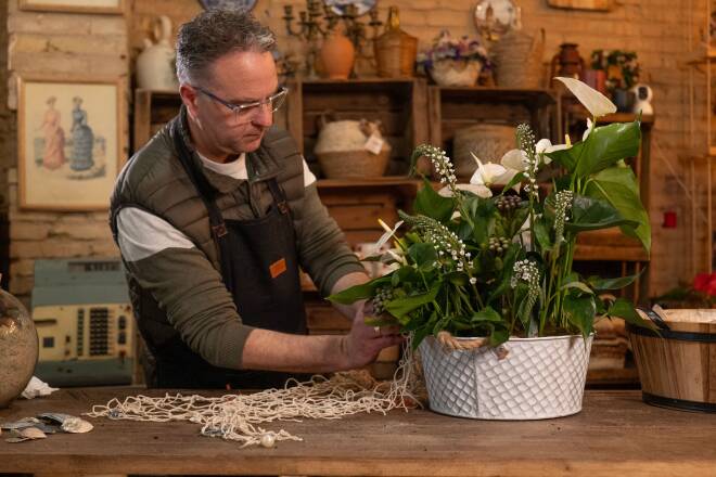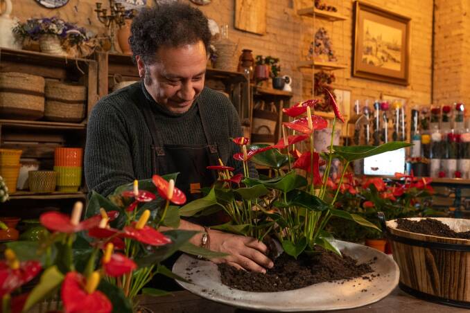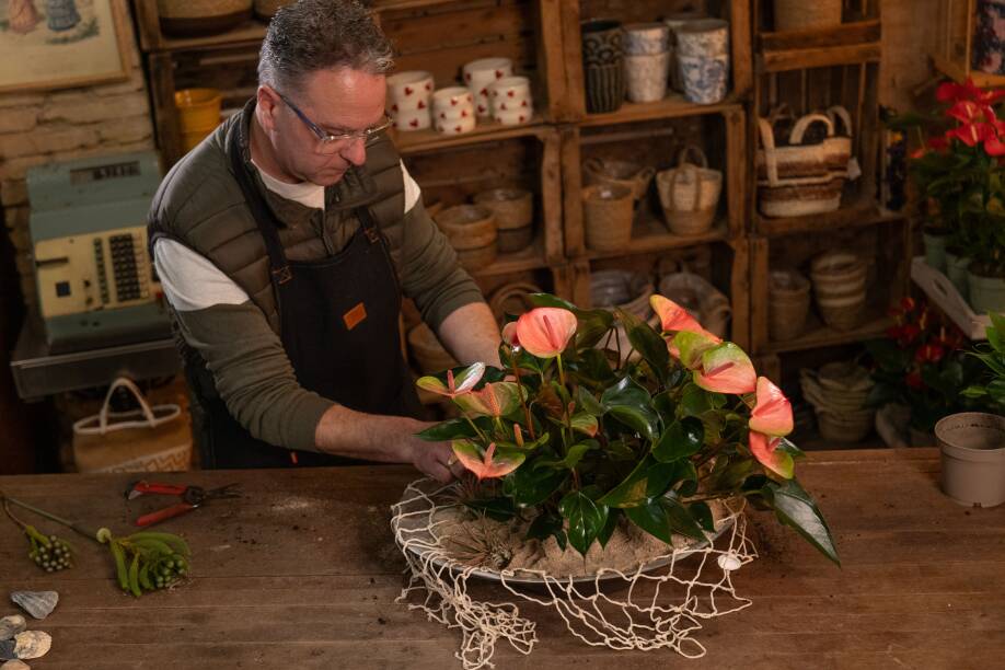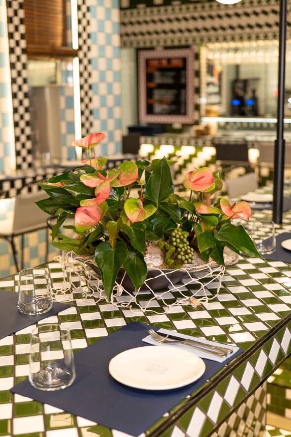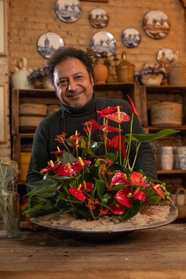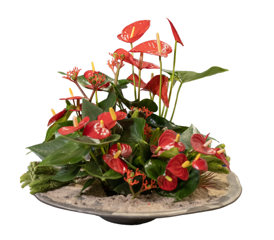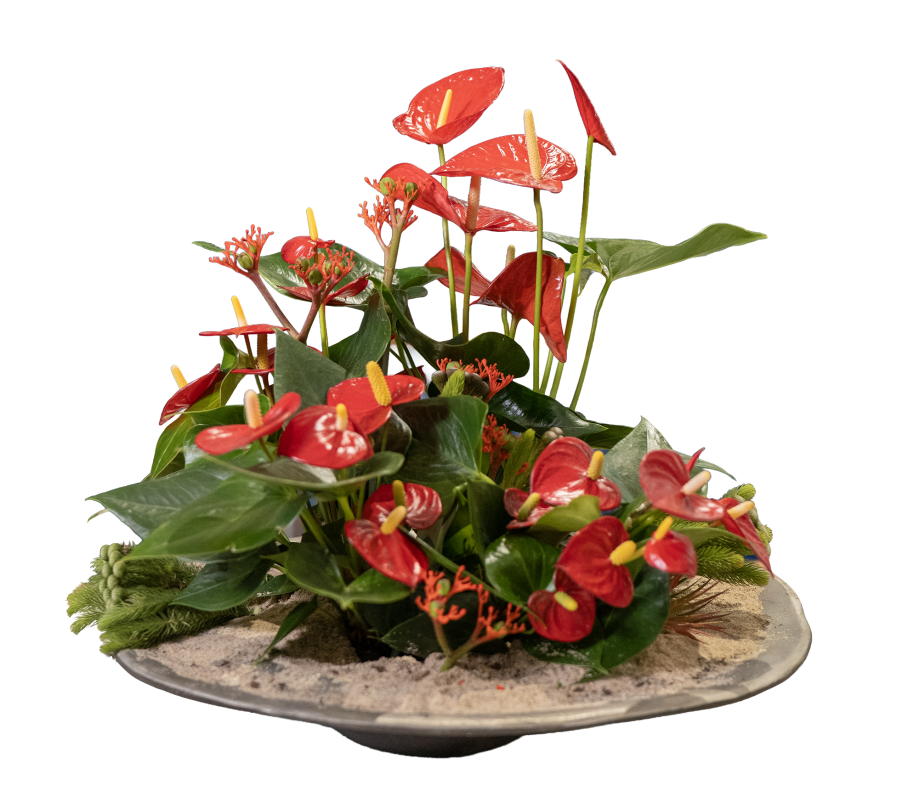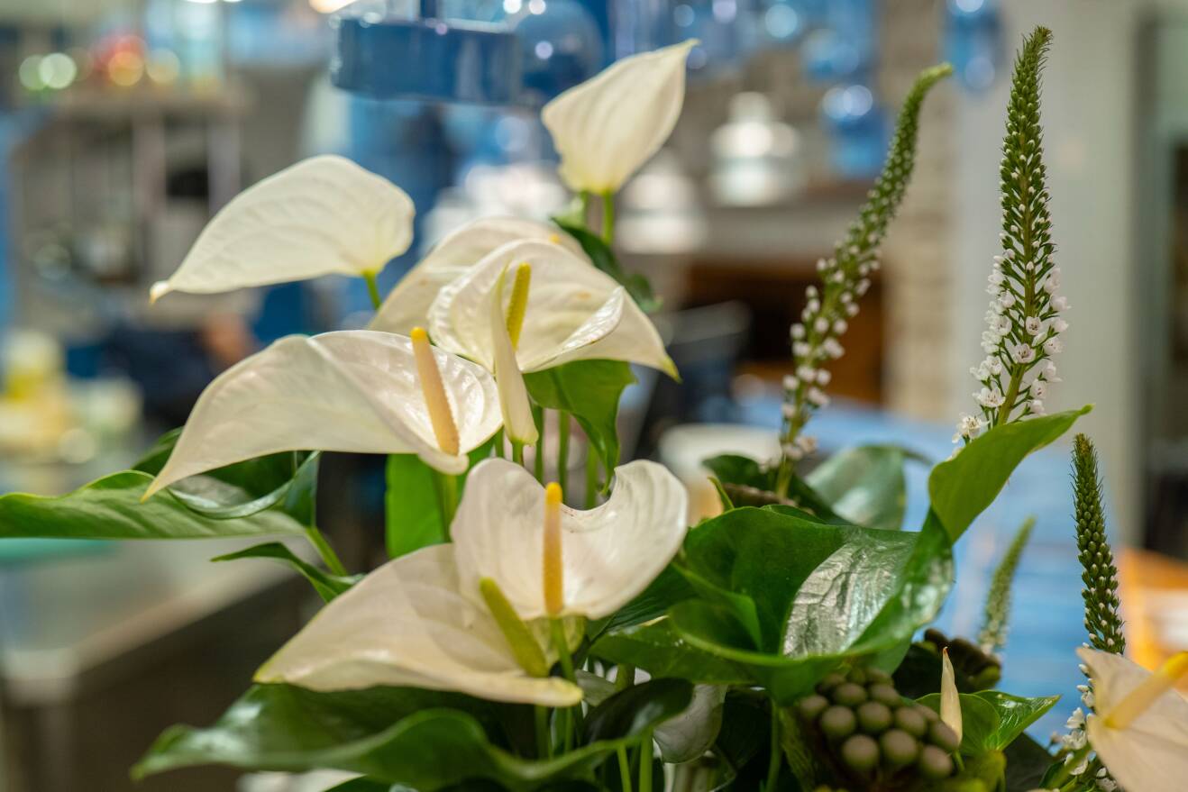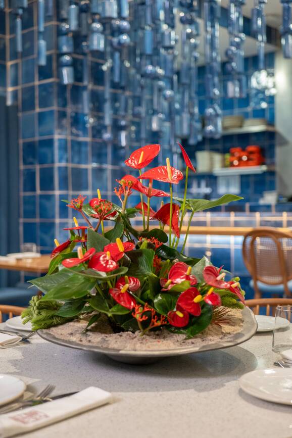 Anthurium doesn’t just decorate a space, it elevates it. With its sculptural shape and deep, vibrant colour, it adds rhythm and refinement to every setting. Subtle yet bold, it enhances the sensory experience long before the first dish arrives. Here, the Anthurium will be the star for many weeks, because of its long lasting quality, and relatively little care needs.